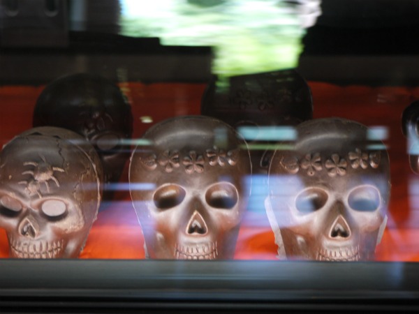 Today and tomorrow are the Mexican Day of the Dead, when everyone celebrates and remembers the lives of those close to them who have passed away. There are no celebrations going on here in our neighborhood of La Punta, because there are no cemeteries here; the celebrations are mostly occurring at the cemeteries in the main town area. There are small shrines arranged in public places, though, and chocolate skulls at the local fine-chocolate store: