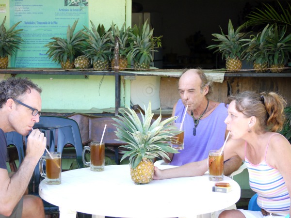 They took us to a cool little roadside stand a few days ago, that serves something called tepache: fermented pineapple juice. It was sort of like a pineapple-flavored kombucha. Someone should start making it in New York, it would be a hit with the crowd that’s into kombucha. The owner of the stand gave us a complimentary pineapple once we were done with our drinks. Here are Michael, Kim and Robert enjoying the cold drink in the hot sun: