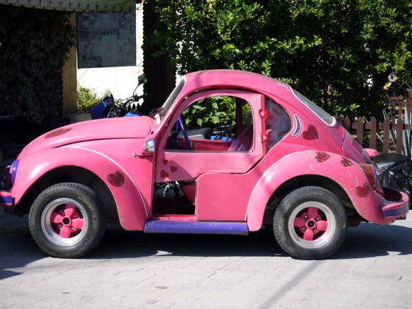 Funny pink pimped-out VW bug we saw there: