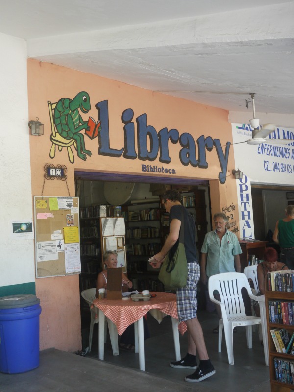 We went over to an area called the Rinconada yesterday. It’s a street a few blocks long with shops and restaurants along one side of it, a little like a (more picturesque than normal) strip mall. Michael has been looking specifically for a copy of Murakami’s The Wind Up Bird Chronicle, to re-read, and we’d heard tell of an English-language lending library at the Rinconada.