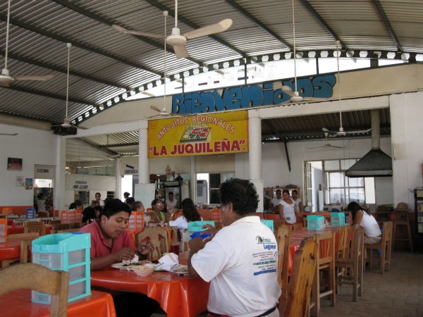 - La Juquilena – our favorite authentic local restaurant after las Margaritas. Great set lunches and delicious pitchers of aguas frescas as well. Don’t make the mistake we did, and go to the impostor restaurant deceptively named Las Juquilenas on 8th Street, one block away from the Benito Juarez Market. The food there is terrible, and that restaurant is taking advantage of the fact that it’s located in the original Juquilena’s spot — the authentic La Juquilena is located behind the soccer field that’s behind the market.