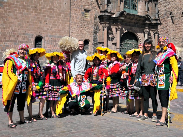 After visiting Puno, we drove to Cusco, one of the loveliest cities we’ve visited so far, with respect to architecture, ruins and ancient culture. We happened to arrive there just two days before Peru’s largest festival, called Inti Raymi and held in Cusco, which is a celebration in honor of the sun god and the Incan new year, which begins after the summer solstice. The streets were shut down every day with parades, dancing and music. Celebrants were out in full force in gorgeous costumes full of eye-popping colors.