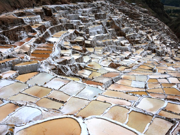 Machu Picchu is a must-see if you’re visiting Peru, but the area all around Cusco, called the Sacred Valley, contains scores of beautiful, worthwhile ruins and sites of interest. Two of our favorites were the Maras Salt Mines, and the ruins at Moray. The salt mines at Maras are pre-Incan and still operational. Each rectangular area belongs to one family. How do they remember which one’s theirs, since none of the rectangles are marked? And how do they know their neighbors haven’t skimmed a little of their salt off the top?! The view of the mines from above is otherworldly.