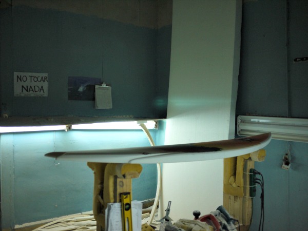 That same evening, the day before we were going to drive north, we started talking to a local guy in the street who asked us if we were surfers after seeing our surfboards in the van. His nickname is Coka; by day, he’s a Coca-Cola distributor, and by night, he’s Antofagasta’s only surfboard shaper. Coka was excited to show us his workshop. We shared a beer, he gave us a tour of his shaping and glassing studios, and we hung out and talked about Chilean surfing with him.